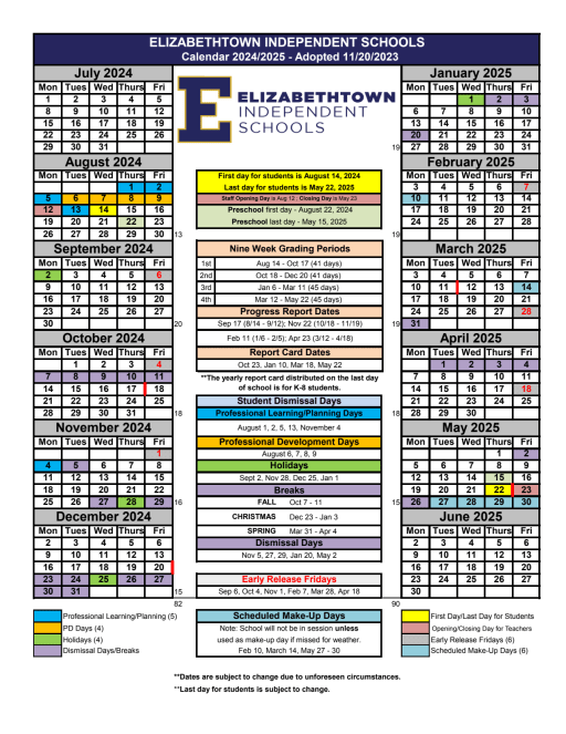 Etown Calendar 2025 2025 25 EIS District Calendar Elizabethtown Independent Schools: Als je naar belangrijke maisons in Milaan kijkt, dan weet je het: de modekleuren voor winter 2025 2025 zijn… winters! De eerste beelden van mode voor volgend jaar winter uit New York. Deze modetrends . The information on the calendar is subject to change at any moment and without prior notification. Users should verify the data independently and exercise due diligence in their financial activities. .